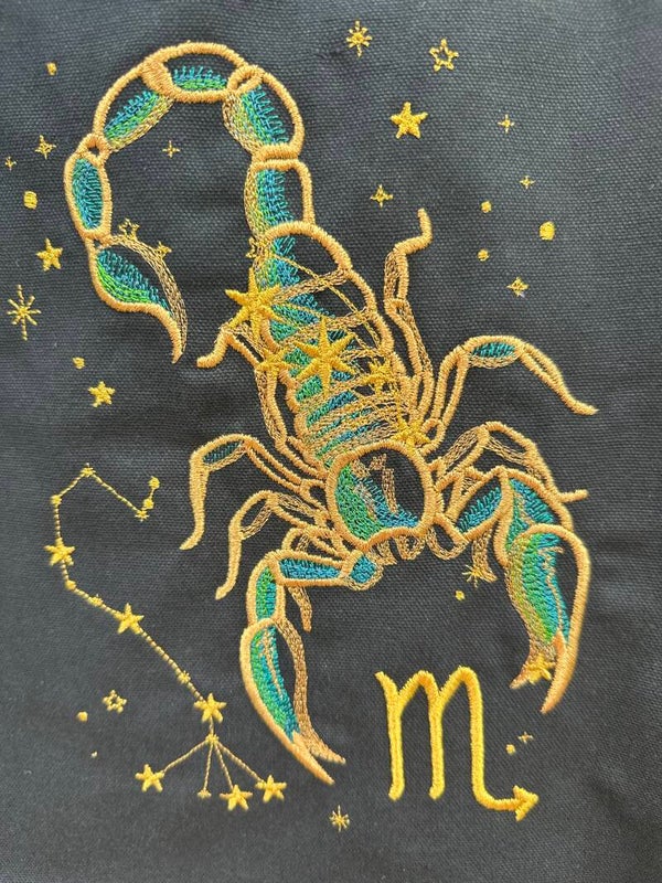 Do you follow astrology? Are you a passionate and intense Scorpio? You'll definitely be passionate about this Gorgeous machine embroidered Zodiac Tote!